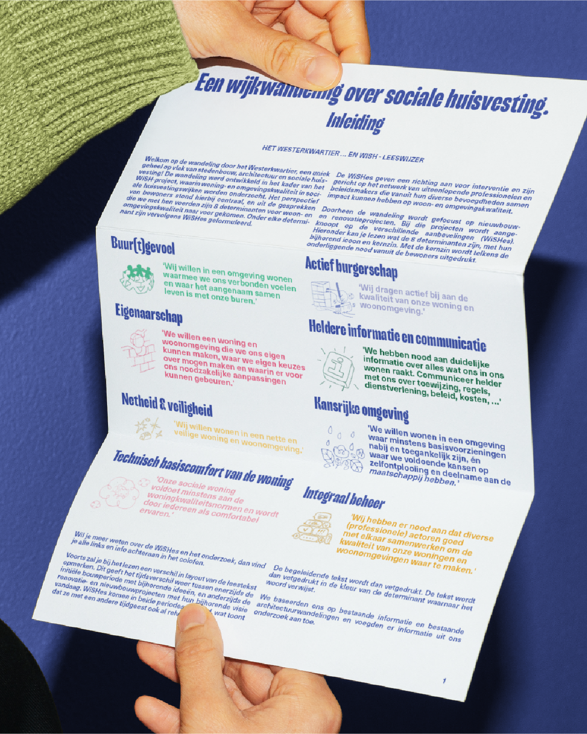 We developed a multi-part toolkit that invited participation from the full spectrum of stakeholders, from gardeners and addiction centres to policymakers. At its core were the stories of 10 residents: real people, real hardships. A large-format illustrated neighbourhood map invites groups to think aloud, annotate, and trace how individual struggles weave into a shared ecosystem. A 54-card game distils the research into categorised, digestible insights that reveal just how multifaceted a single resident's issue can be. Alongside the toolkit, we designed the accompanying research publication.