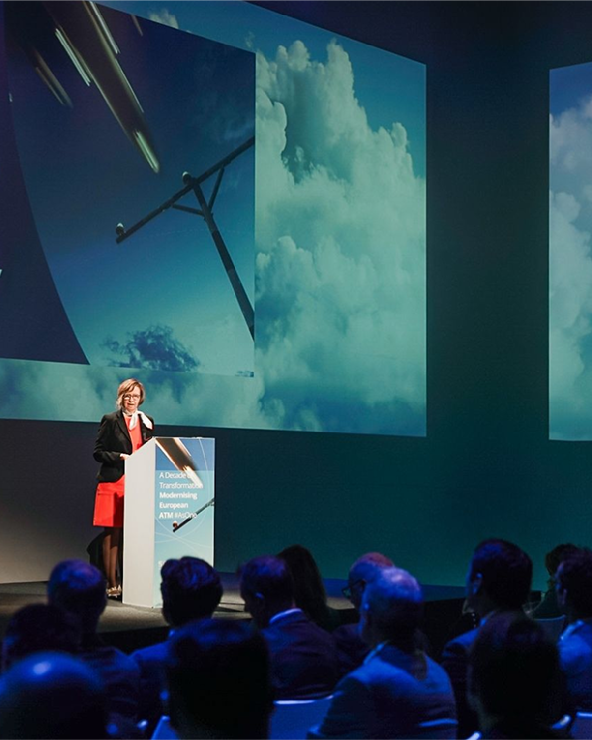 SESAR Deployment Manager were marking 10 years of transforming European aviation. The challenge was doing that story justice, turning a decade of archive footage into something immersive enough for a flagship stakeholder event, spanning a walkable LED tunnel and large-scale projection screens.
